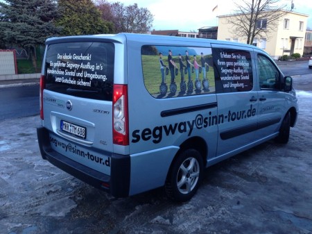 Mit unserem speziell dafür umgebauten Transporter können die Segways jedenfalls an jeden geeigneten Startpunkt gebracht und von jedem geeigneten Zielpunkt abgeholt werden . . .